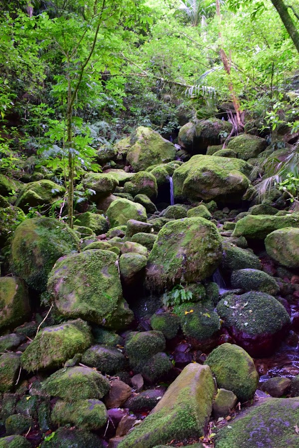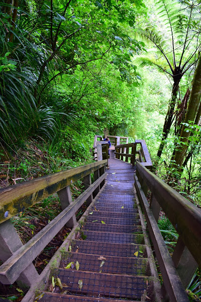 Aparcamos el vehículo de nuevo en un pequeño parking, que en temporada lata debe ser un pequeño infierno, ya que es un poco estrecho e iniciamos el suave pero contundente ascenso por un camino lleno de puentes que cruzaban el río Wairere, muchas escaleras y un denso bosque nativo.