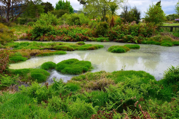 Alrededor del Museo de Rotorúa y como si de un collar de esmeraldas para el edificio se tratara, se encuentran estos cuidados jardines de estilo inglés, un espacio de postal con un césped perfecto, abundantes rosas, humeantes piscinas de aguas termales (unas salvajes, otras domesticadas), campos de criquet y de bolos, un campo de golf y uno de los más elegantes spa de todo el hemisferio sur.