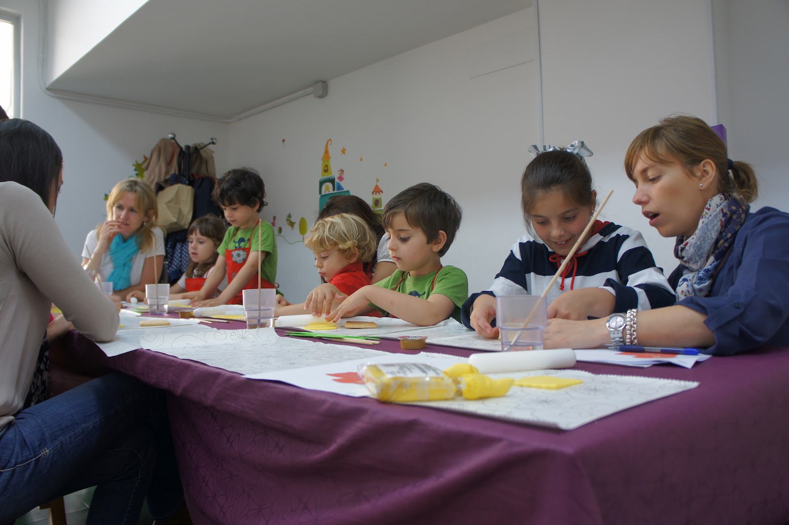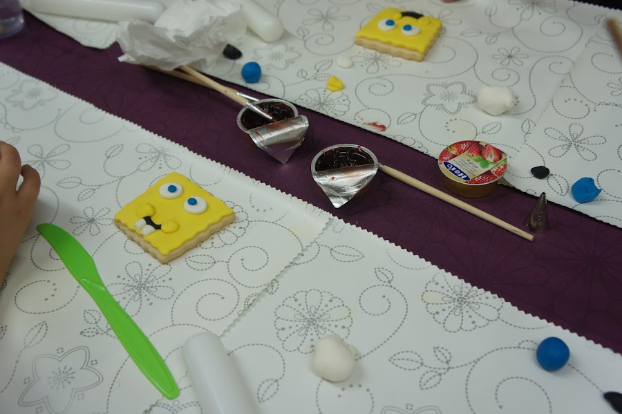 Las mamis y tias ayudaron a los peques a decorar a Bob Esponja, Pocoyo, Kitty, Elmo...