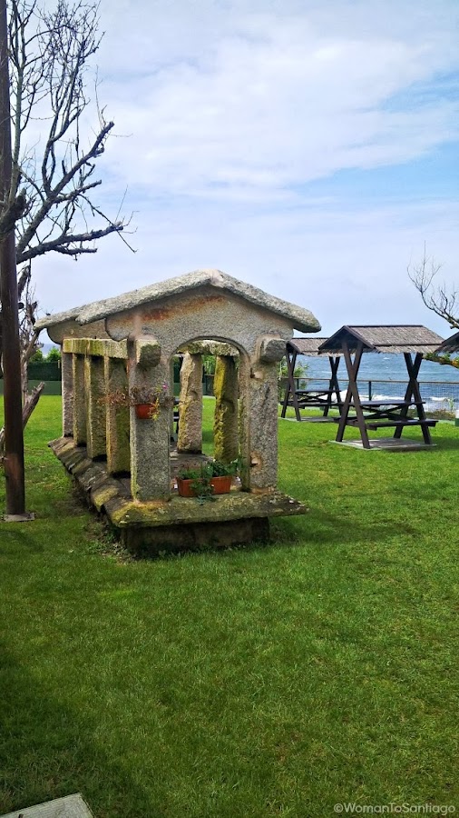 La tapería es una terraza abierta al mar y a su imponente monasterio. Quizá una de las cosas que más valoro cuando como en el Camino, es la ubicación. Aquí no sólo disfrutas de un sitio privilegiado, además comes de maravilla. Aire fresco del Atlántico, vistas increíbles, naturaleza y los ricos productos de la tierra gallega. Merluza, churrasco, zorza, mejillones y pulpo hicieron nuestras delicias. La merluza lo mejor!