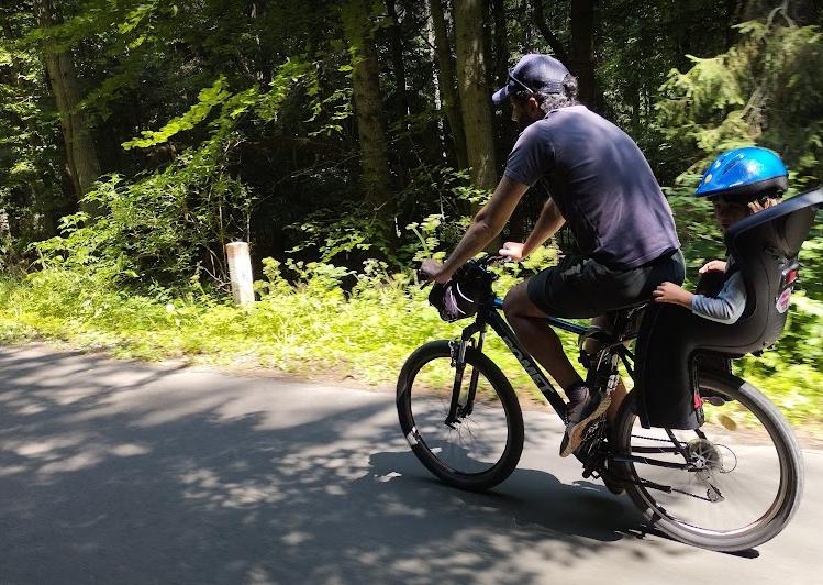 La visita dura unas dos horas en perfecto polaco, no hay opción de inglés. Una vez terminamos la visita fuimos a alquilar las bicis. Alquilamos dos, porque había mucho desnivel. Oli fue en sillita.