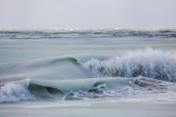 Para que las olas puedan llegar a congelarse literalmente han de concurrir 4 requisitos: