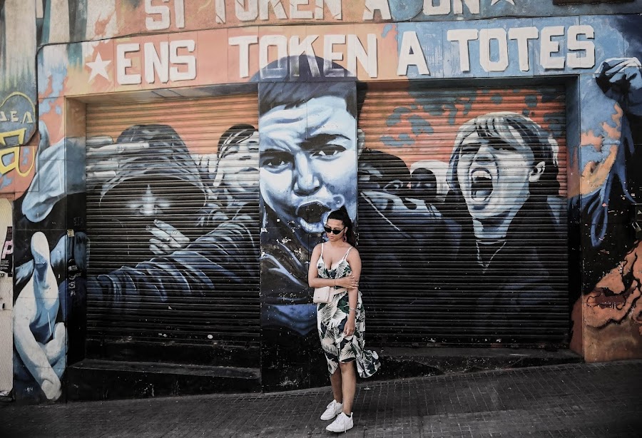A pesar de las altas temperaturas, nos deparó lo mejor de Barcelona, creo que más enamorada no pude salir de allí. Buscando tan sólo la comodidad salen looks como el que os presento hoy. Vestido con estampado floral, sneakers para aguantar el día, y riñonera para no cargar nada a hombros. Acerté de pleno.