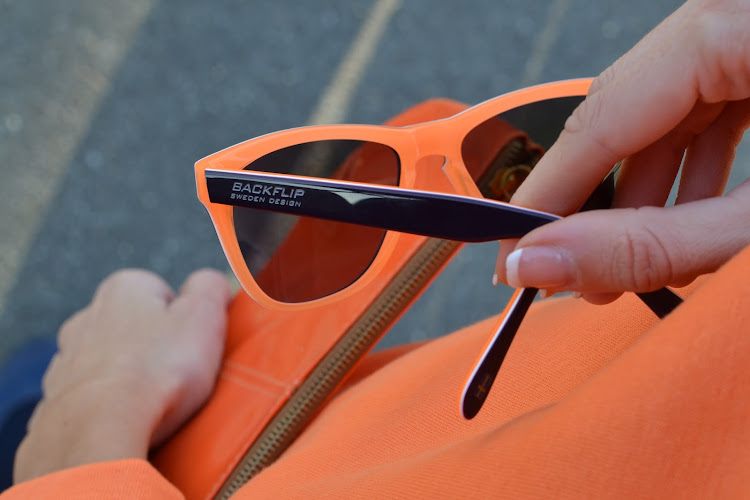 Para completar mi look más sporty, nada mejor que mis Backflip con varillas naranjas e interior también en naranja y cristales espejados de Navarro Óptico.