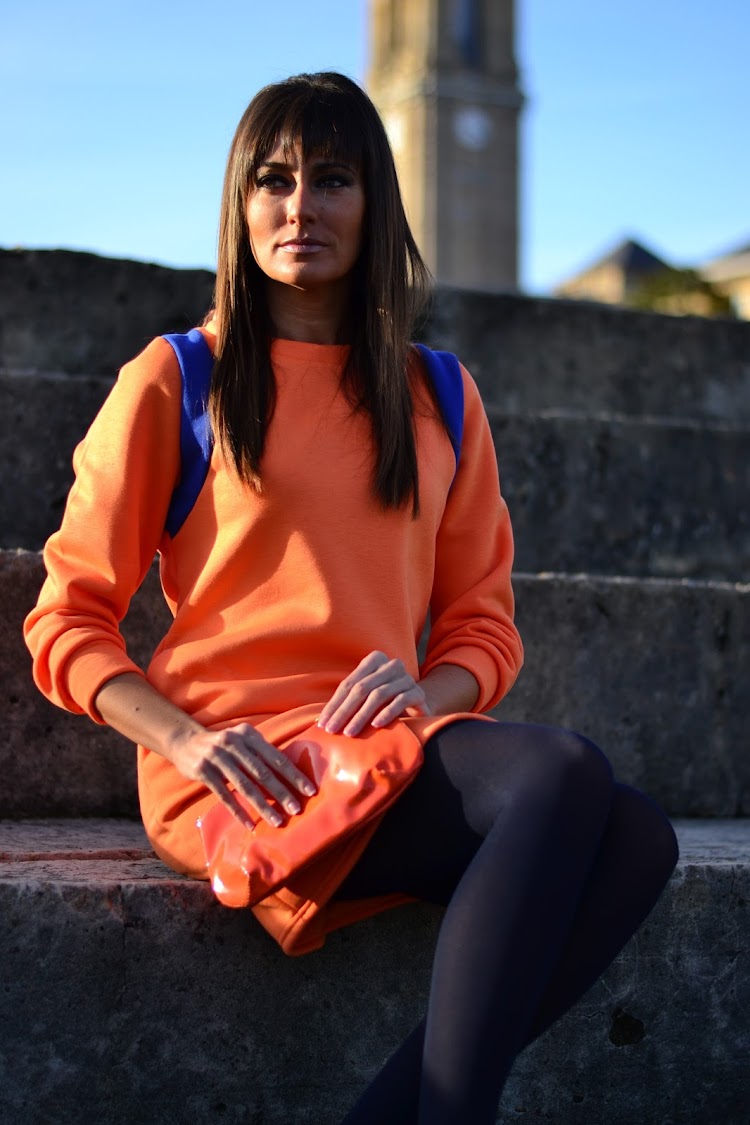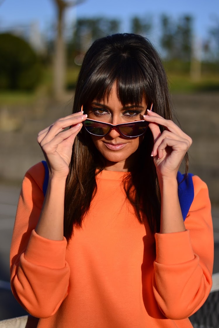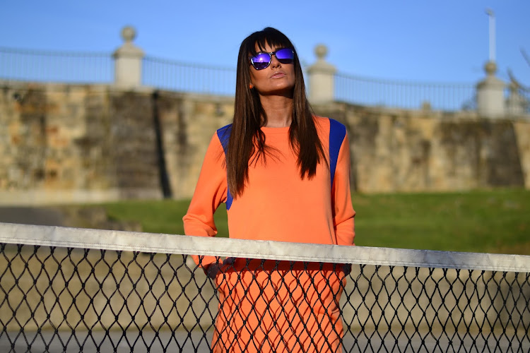 Por eso hoy he escogido un tono tan llamativo y vivo como el naranja en este deportivo vestidito-sudadera de tela de algodón de Romwe (por cierto, una tendencia las de los vestidos sudadera, que me encanta, porque son ideales para esos momentos en los que me apetece ir súper urbana y desenfadada).
