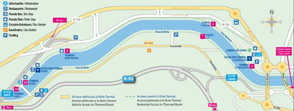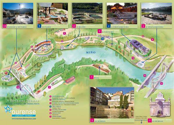 El resto de las termas se encuentran fuera de la ciudad a orillas del Miño envueltas en un marco de exuberante naturaleza.