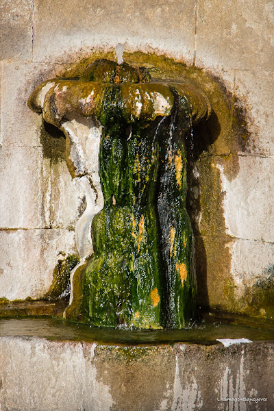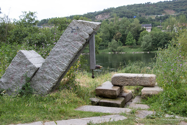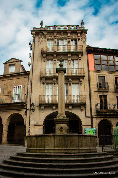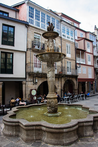 Esta bonita fuente es la que fue trasladada desde el claustro del Monasterio de Santo Estevo de Ribas de Sil y de la que ya os hablé en el post de la Ruta del Sil de la Ribeira Sacra.