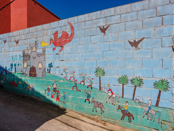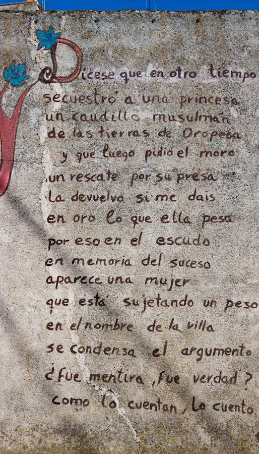 En mi vista a Oropesa que os conté en el capítulo anterior tuve la grata sorpresa de encontrarme con una cantidad de vallas pintadas por las calles a modo de graffiti. Como sabéis, es una de mis temas de fotografía preferidos como podréis ver en Madrid, ¡Pinta Malasaña!, en Navalcarnero, en Valverde de la Vera y en Bruselas, hasta ahora. Seguid leyendo este post y os sorprenderán los graffitis con temas medievales de Oropesa, toda una joya.