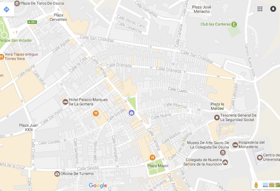 Vamos a hacer un recorrido por Osuna, recomiendo aparcar arriba del pueblo y luego bajar andando, más que nada porque hay más sitio para aparcar arriba, en la misma colegiata, o en las calles que suben.
