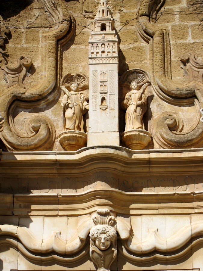 Detalle de la fachada, la Giralda con las santas Justa y Rufina.