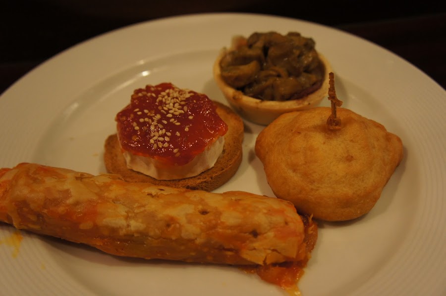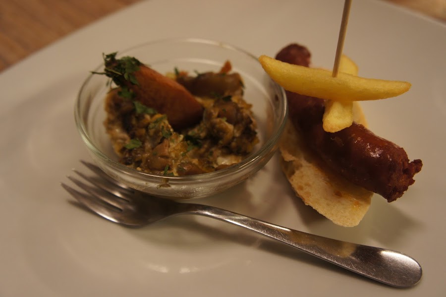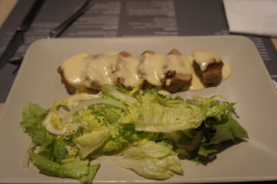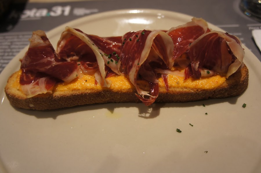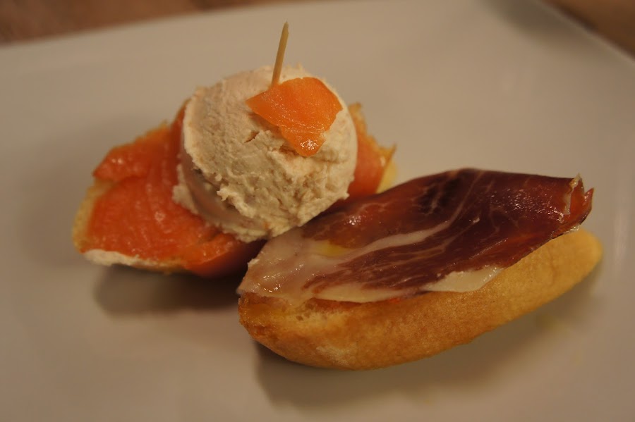 Antes de traernos los platos del menú que escogimos, nos pusieron de pincho de cortesía unas croquetitas de queso y jamón muy suaves y riquísimas.