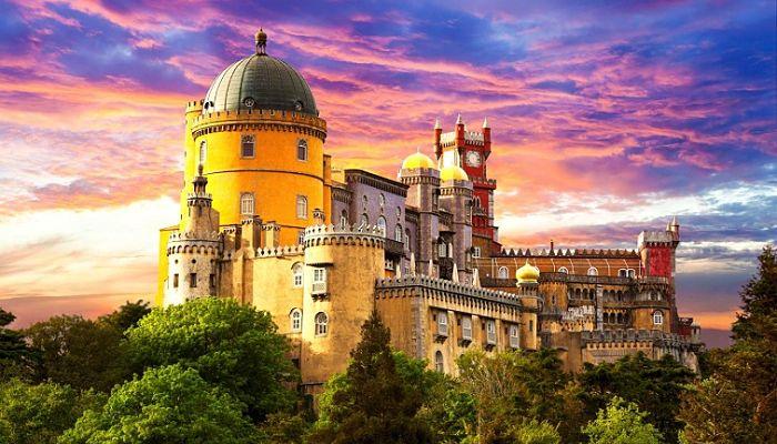 Sintra es una hermosa ciudad que se encuentra cerca de Lisboa en Portugal. Es uno de los lugares más populares de Portugal y está protegido por la UNESCO como Patrimonio de la Humanidad. También es una de las Siete Maravillas de Portugal. El hermoso castillo en la cima de la colina en las montañas de Sintra, llamado Palacio da Pena, todavía inspira artistas y atrae a turistas. Su larga historia es tan rica que es difícil creer que todos esos eventos realmente sucedieron en un solo lugar.