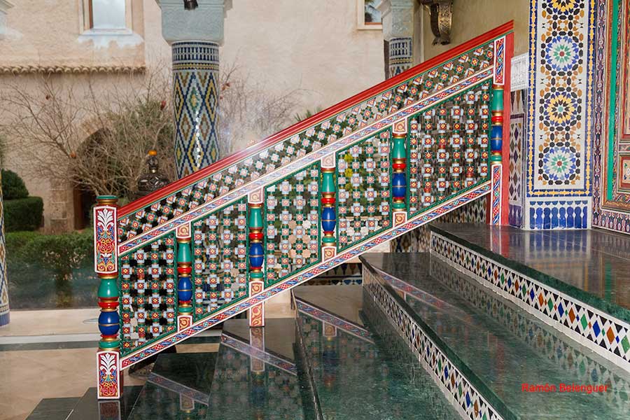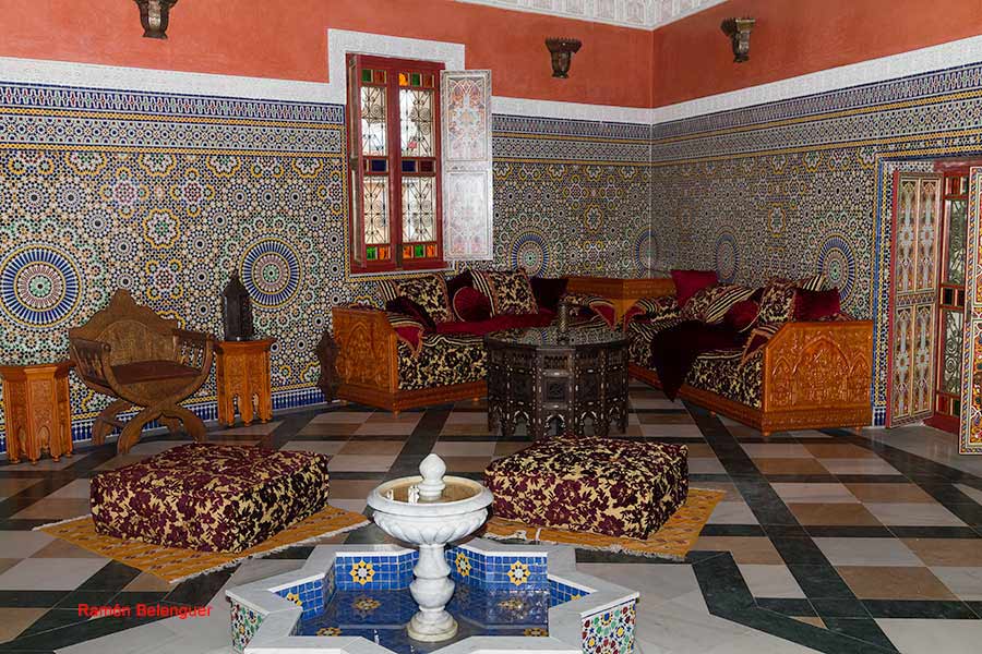 Sala árabe: la entrada consta de unos arcos peraltados sustentados por columnas revestidas de azulejos con motivos romboidales, accedemos por unas puertas acristaladas. En su interior destaca la variedad de colores y materiales usados. Consta de un ventanal con vistas a las montañas y al rio Sellent. El artesonado está realizado a mano y decorado con motivos vegetales y arabescos, las columnas y suelos son de mármol. En la parte izquierda hay una escalera que conduce a una estancia con mobiliario de estilo árabe, una fuente en el centro, las paredes están decoradas con zócalos de gran tamaño. El artesonado del techo fue pintado a mano por artesanos marroquíes, que lo realizaron en su tierra y posteriormente se desplazaron ex profeso a Anna para montarlo "in situ",
