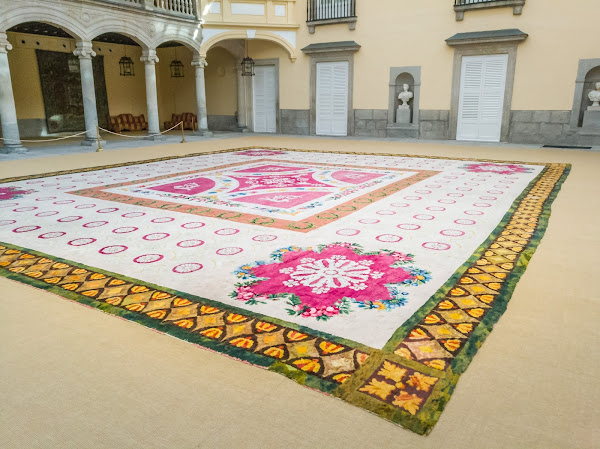 Espectaculares son las alfombras en perfecto estado de conservación, confeccionadas todas por la Real fábrica de tapices de Santa Bárbara y que podemos admirar a lo largo del recorrido, algunas también de doscientos años de antigüedad.