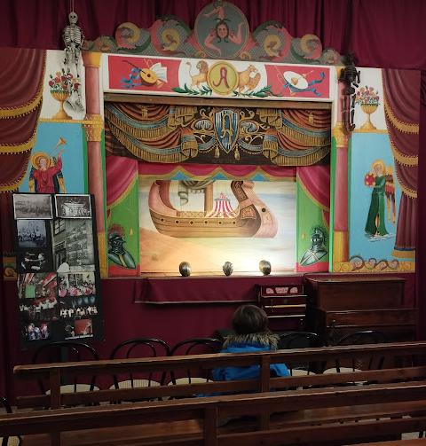 A las 21 horas teníamos entradas para el teatro de marionettes Pupi pero nos devolvieron el dinero a falta de personal. Cómo estabamos sólos nos dejaron tocar lass marionetas, entrar al escenario, fue divertido.