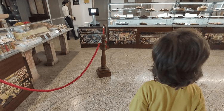 El precio de los psteles un poco caro pero merece la pena tomarse el café en el claustro.