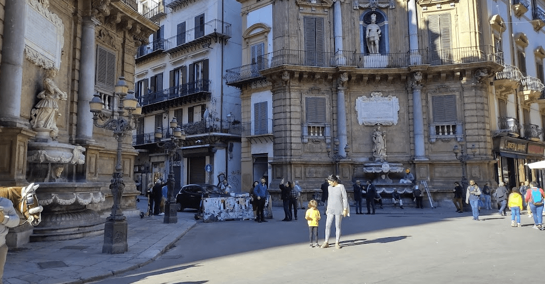 Fuimos paseando y llegamos a la calle de las cuatro fachadas, i quattro canti Estaba en obras y deslucía un poco, pero cómo referencia es un punto bonito por el que pasar.