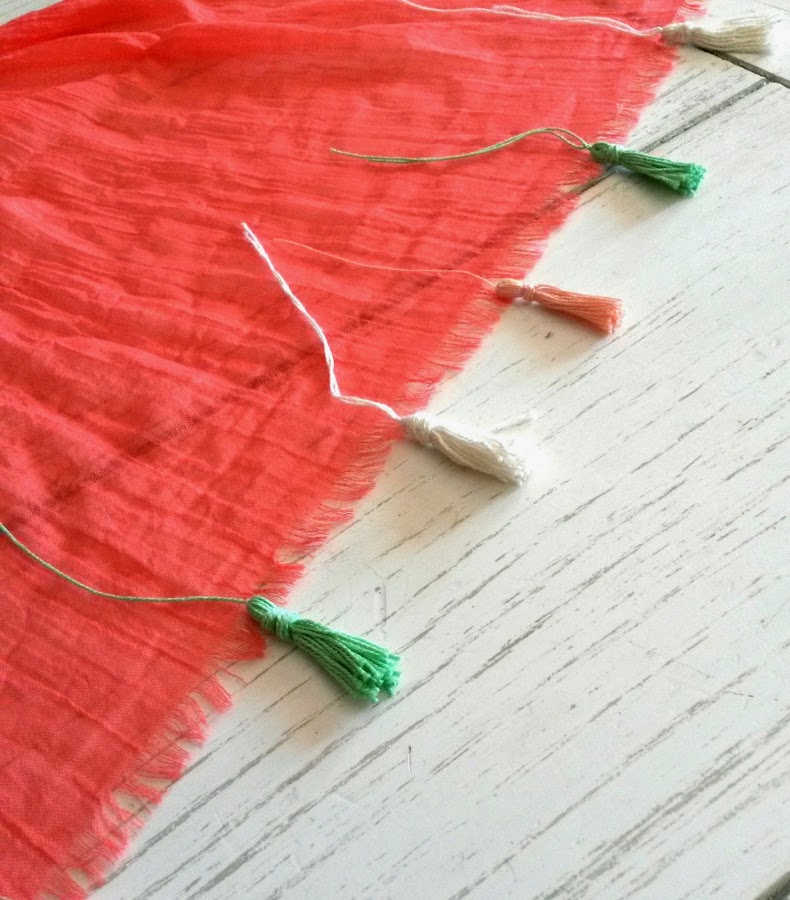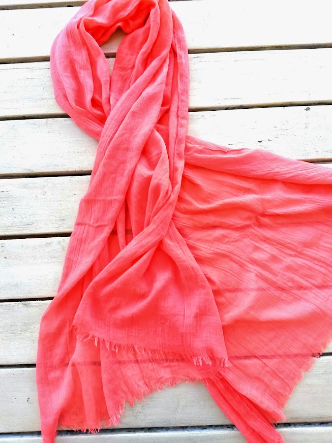 El pañuelo coral me gustaba ya así, tal cual (el color es perfecto para esta temporada, y para el verano:) pero luego pensé que sería divertido añadirle un toque más, personalizarlo con algún detalle, customizarlo para hacerlo único.