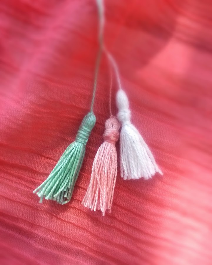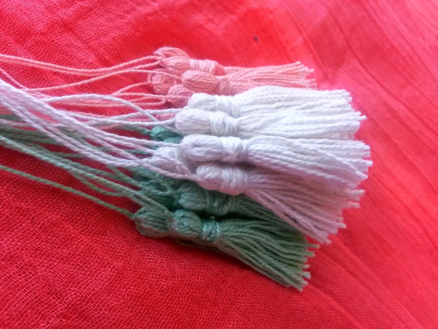 Con unos restos de hilos de algodón en colores pasteles he hecho unas borlas de prueba...