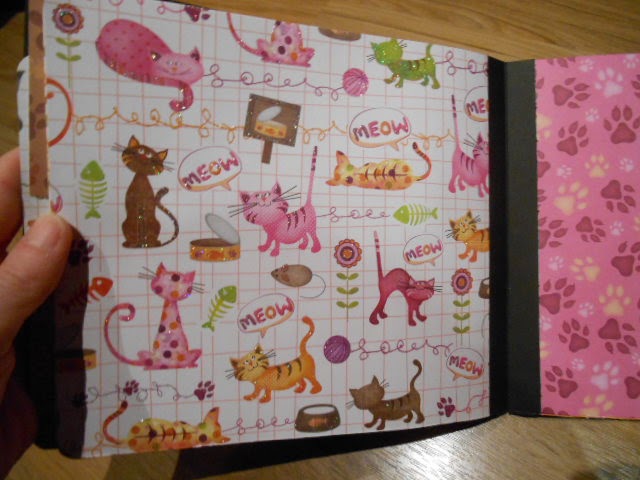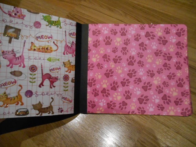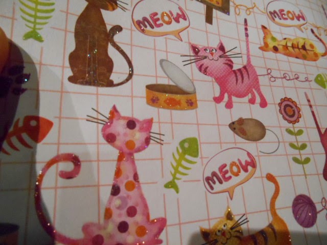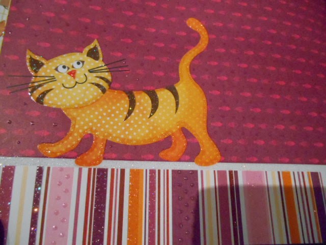 No lo he adornado ya que los papeles por si sólos ya tienen bastantes dibujitos y son muy resultones, con brillitos y texturas, los vi y me enamoré de ellos, sobretodo los de los gatitos, espero que os guste, a ella le ha encantado y a mí ver su cara de sorpresa, jejeje!!