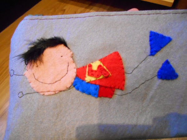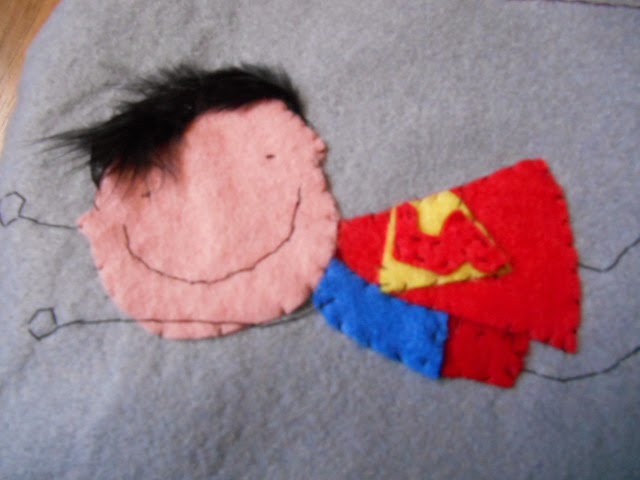 él es el héroe de nuestra famili, que mejor que ponerle a Supermán, el dibujo es de Misspink, y yo lo he hecho en fieltro