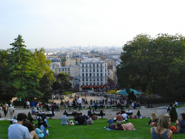 Desde lo alto de la escalinata, al pie de la Basílica del Sagrado Corazón, podrás contemplar una hermosa vista de París sin pagar ni un euro y con un ambiente increíble. La mejor hora sin duda es la de la puesta de sol, donde los jóvenes locales se dan cita trayendo unas bebidas y disfrutando en el césped de los últimos momentos de la tarde en pareja o con amigos.