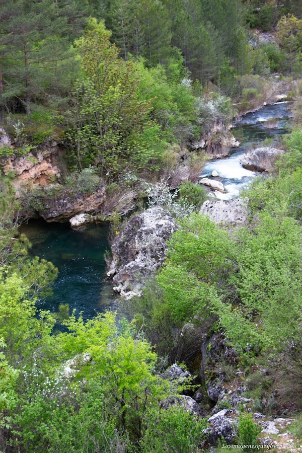 Seguimos avanzando entre peñones labrados por el río Tajo, al cual encontramos un poco más adelante con aguas cristalinas y rápidas continuando con su labor erosionadora y creadora de paisaje.