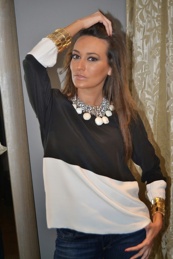 Y, finalmente, una blusa de apacible elegancia, pero con un punto imaginativo, que me apasiona, no solo porque juega con el clásico binomio blanco y negro, que tan bien me funciona cada temporada, sino además por el detalle de sus puños que hacen de ésta, un prenda única, cuanto menos aburrida, que nos permite escapar de la monotonía.
