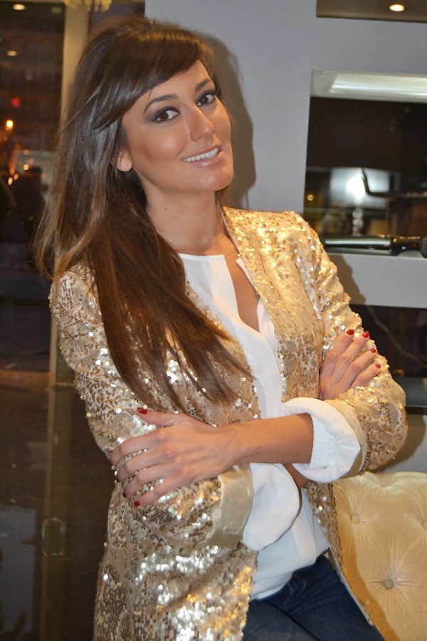 En este caso, he elegido una vistosa americana de paillettes de corte entallado, muy femenina, que concuerda a la perfección con mi edad y estilo de vida en general.