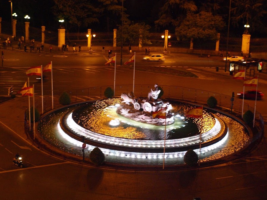 Se hace de noche. Y Madrid se viste con sus luces para brillar y estar bonita tanto para los que estamos, para los que vienen o los que están de visita. Así que cuando la luna me mira, prefiero ir a Cibeles, una de las plazas más visitadas de la capital, y donde encierra millones de emociones en cualquier evento socio-cultural.