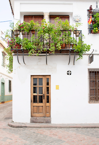 Lo que más me llamó la atención, tanto de la ciudad como de los pueblos cercanos, fueron las macetas colgadas por todas partes. Había visto fotos antes de venir, pero no imaginaba que habría tantas y tan bien cuidadas. Especialmente en los pueblos, es común que los vecinos tengan el patio, las ventanas y los balcones llenos hasta los topes de macetas coloridas que parecen de cuento. Es curioso como a pesar de que prácticamente todas las casas sean blancas y lisas, ningún lugar da la sensación de ser monocromático ni tristón porque toda esa blancura está salpicada de color. Y me encanta; he venido obsesionada con las plantas cordobesas... puede que por eso en la mayoría de las fotos que ilustran este post las plantas sean las principales protagonistas, no me tengas muy en cuenta en monotema, please .