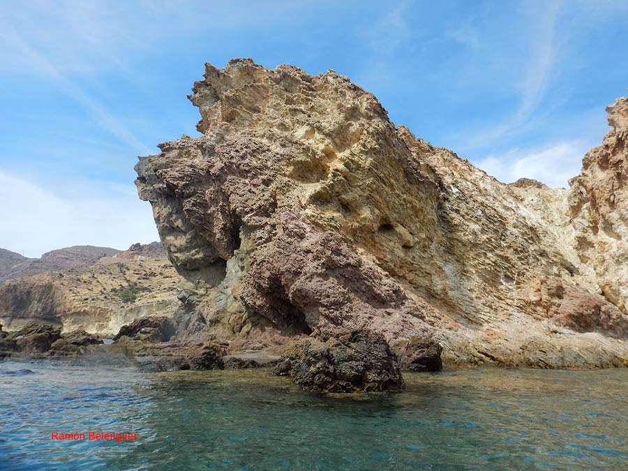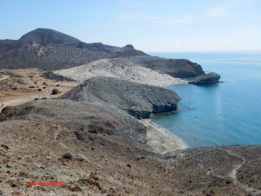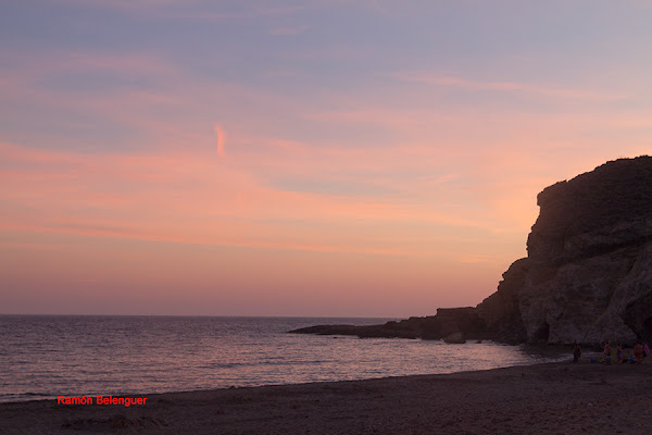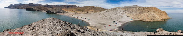 Se desde el camino a las playas de poniente que sale de San José. Es la siguiente playa después de Monsul. Su nombre se lo da la forma de la playa, una media luna de arena con formaciones rocosas a ambos lados que proporcionan algo de sombra.
