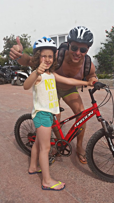 Estábamos alojados en el Hotel Lago Playa donde , había un servicio de alquiler de bicis, así que las reservamos temprano y allí las teníamos preparadas, dos grandes y una pequeña para mi hija, 3 cascos, crema de sol, y muchas, muchas ganas de empezar nuestro primer día en Formentera con esta bonita aventura.