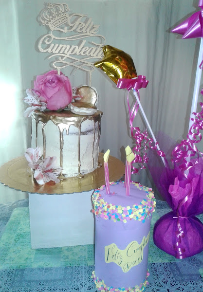 Pero este Pastel no vino solo…sino acompañado de una deliciosa Torta Drip Cake…elaborada por Yuri - Pastelería Fina, que por cierto les invito seguirla en Facebook.