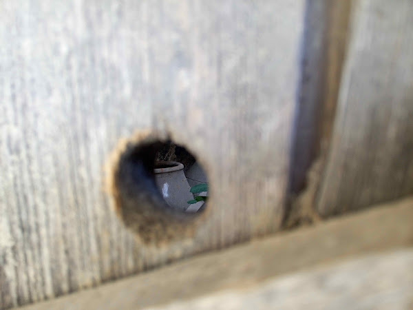 Y cómo no... No lo puedo evitar. Tengo verdadera debilidad por asomarme a las casas abandonadas para encontrar cosas de otro tiempo, y en esta ocasión me encantó descubrir, a través de los agujeros de una puerta, una cunita y unas tinajas antiguas