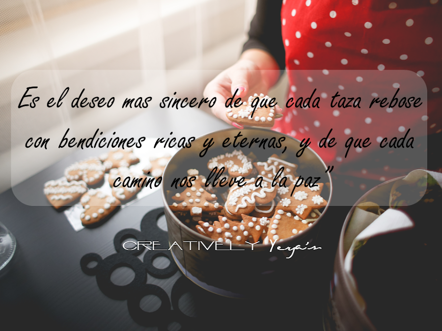 "Que el próximo año esté lleno de bendiciones, de sueños por soñar, de nuevos caminos por recorrer, de salud para brindar, de amor para llenar el alma, de canciones que enriquezcan el sonido de la vida, de amaneceres llenos de sol y anocheceres llenos de luna, de abrazos que abracen la vida, y sobre todo el amor y la paz de Dios que sobre pasa TODO entendimiento.