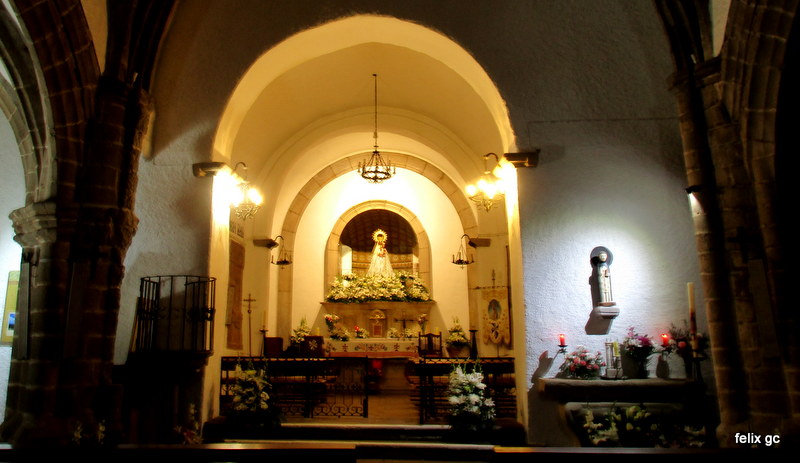 La capilla del Santuario de la Virgen de la Peña de Francia,donde una infinita paz albergan sus muros,y la primavera instalada a los pies de la Santa,nos hablan del reducto de fe ,silencio y paz que se vive en su interior.