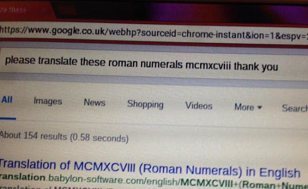 Comenzamos con May Ashworth, una abuela británica de 86 años que se ha hecho mundialmente conocida gracias a una foto que su nieto tuiteó. La imagen muestra una búsqueda que la anciana realizó en Google el pasado 9 de junio y en la que se puede leer: "Por favor, traduce estos números romanos MCMXCVIII, gracias", escribió la tierna y siempre agradecida abuela de Ben Eckersley.