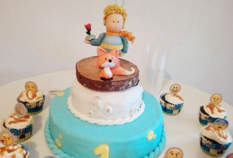 El 22 de abril Martín cumplía su primer añito, y le hice una torta cuyo motivo fue El principito, hice cupcakes. Fue mi primer trabajo de pasteleria, !todo quedo hermoso!