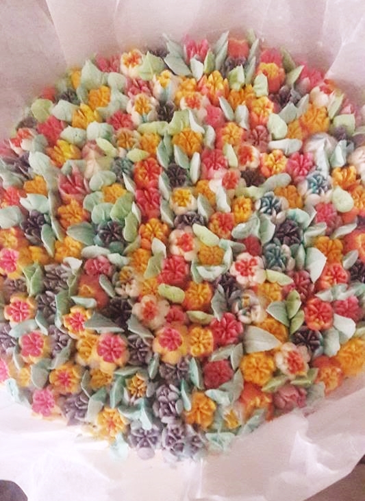 El día del cumpleaños de mi mamá le hice una torta con un ramo de flores de mantequilla, !ella feliz! me dijo: Vanessa eso es lo suyo.