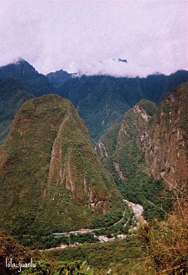 Conforme iba avanzando el viaje, nos íbamos adentrando en la cordillera andina. El paisaje cada vez se hacía más abrupto y escarpado. Es entonces cuando entendimos para qué estaban las ventanas en el techo del tren. Pudimos disfrutar de las vistas de las montañas sobre nuestras cabezas. El tren se iba metiendo por unos estrechos desfiladeros y cada vez más estábamos rodeados de enormes macizos rocosos. Nos hacíamos a la idea de hacia dónde nos dirigíamos y dónde estaba ubicado el Machu Picchu.