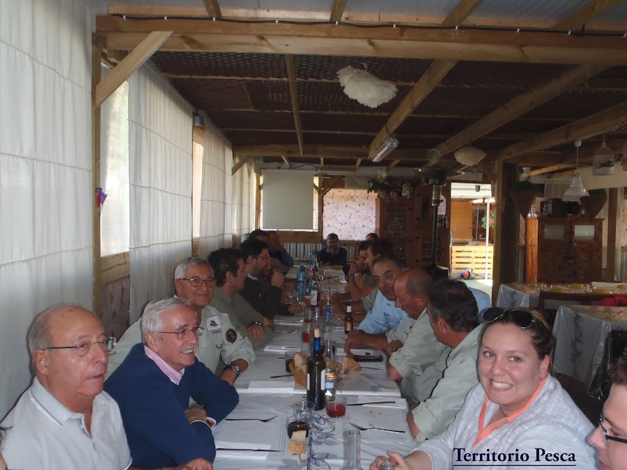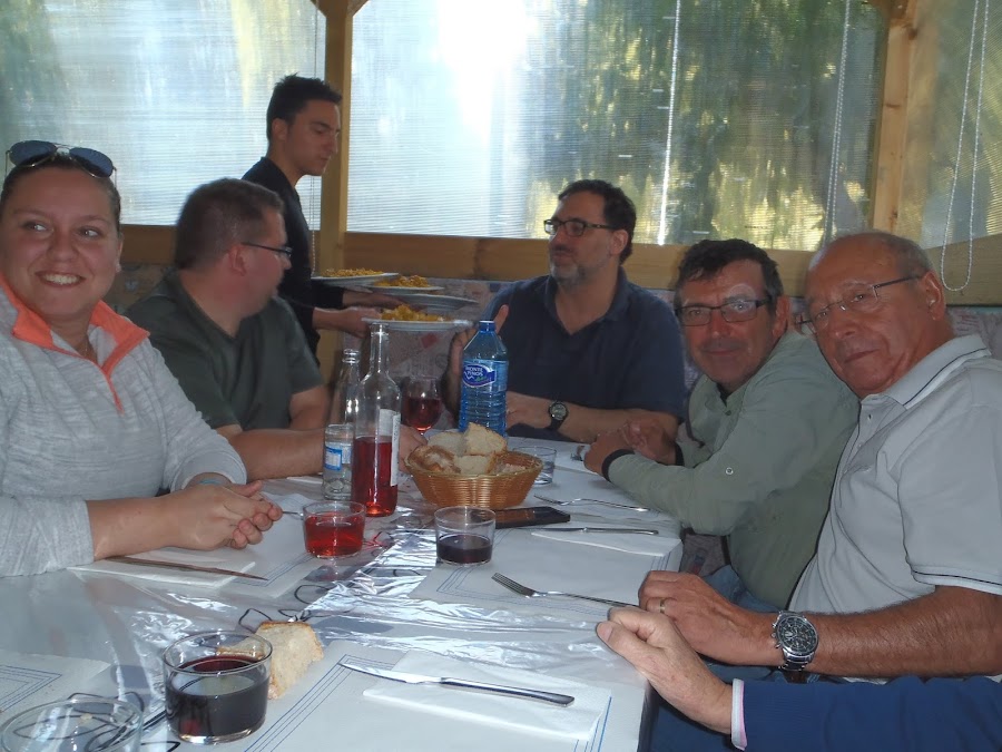 El Lugar elegido fue Villanueva de Carrizo y la comida se realizó en el restaurante de la Piscifactoría donde se disfrutó de una rica paella y cordero asado de la tierra, a lo que siguieron unos postres de la casa y el café regado con la bebida espiritual regalo del socio Bachiller.