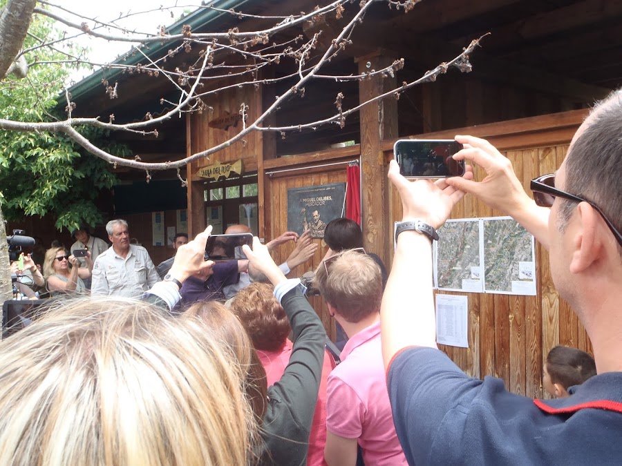 A continuación se rindió un merecido homenaje al escritor D. Miguel Delibes, que fue ilustre pregonero de la Semana Internacional en sus comienzos. Con este motivo se descubrió una placa con la nueva designación de Aula del Río Miguel Delibes. A este actos asistió el Consejero de Fomento y Medio Ambiente D. Juan Carlos Suárez Quiñones y el sequito de autoridades que siempre forman parte de estos actos protocolarios.