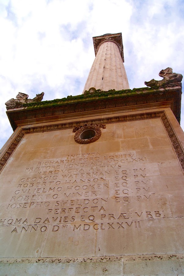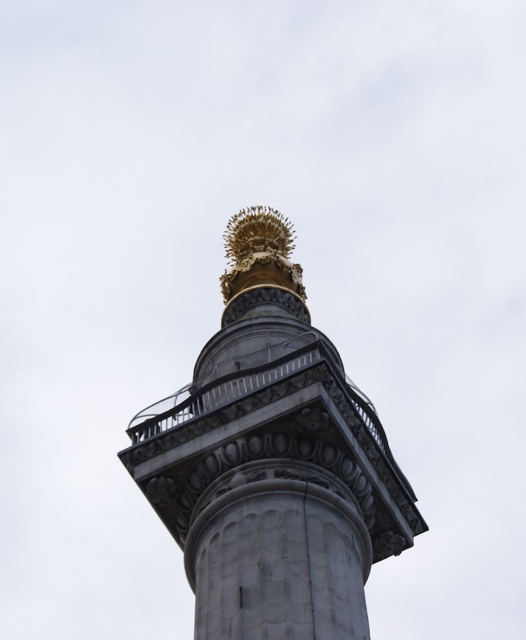 Esa "columna" es el monumento que erigió Wren, el arquitecto de San Pablo para recordar el Gran Fuego de 1666 y de ninguna manera carece de importancia. Para aquellos que como yo, adoren las curiosidades, voy a contarles algunas en lo que subimos los 311 peldaños que nos conducirán a la plataforma de observación.