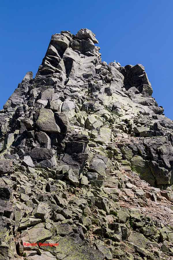 Se trata de un pico ultraprominente, siendo la cuarta cima tras Mulhacén, Aneto y Torre Cerréu. La cumbre más elevada más cerca es el Tiro Tirso (2.639 m), cima contigua al Llambrión (2.642 m), que es el techo de los Picos de Europa, existiendo más de 327 Km. entre ambos.