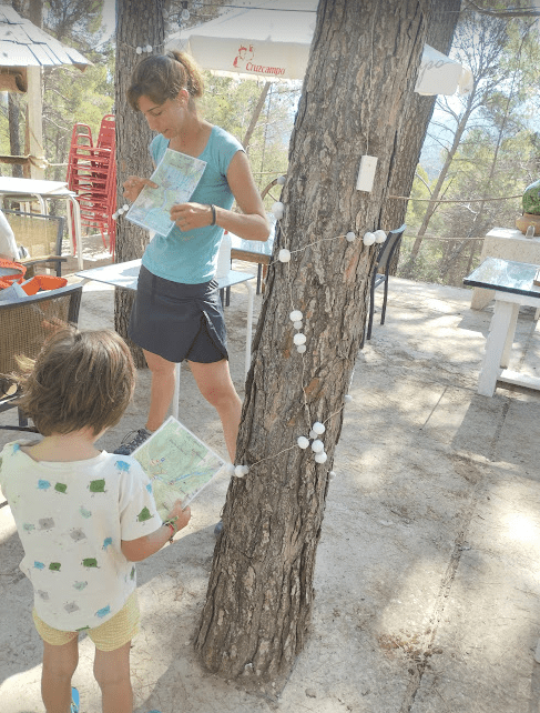 La aventura empezaba con un monitor que nos daba un mapa y unos walki talkies y nos marcaba unas normas que seguir hasta llegar al tesoro.