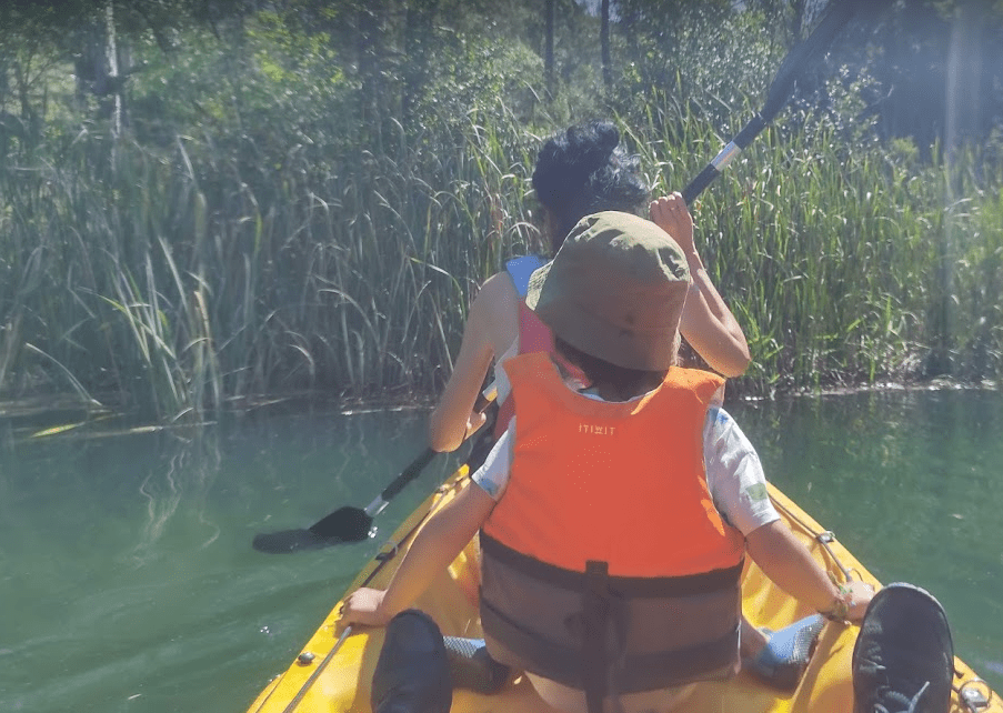 Queríamos hacer piraguas con Oli y descubrimos el espacio Libélula, a hora y media de Madrid. https://aventuralibelula.com/
