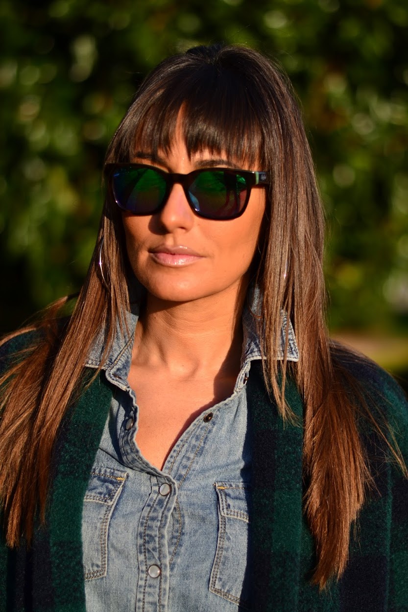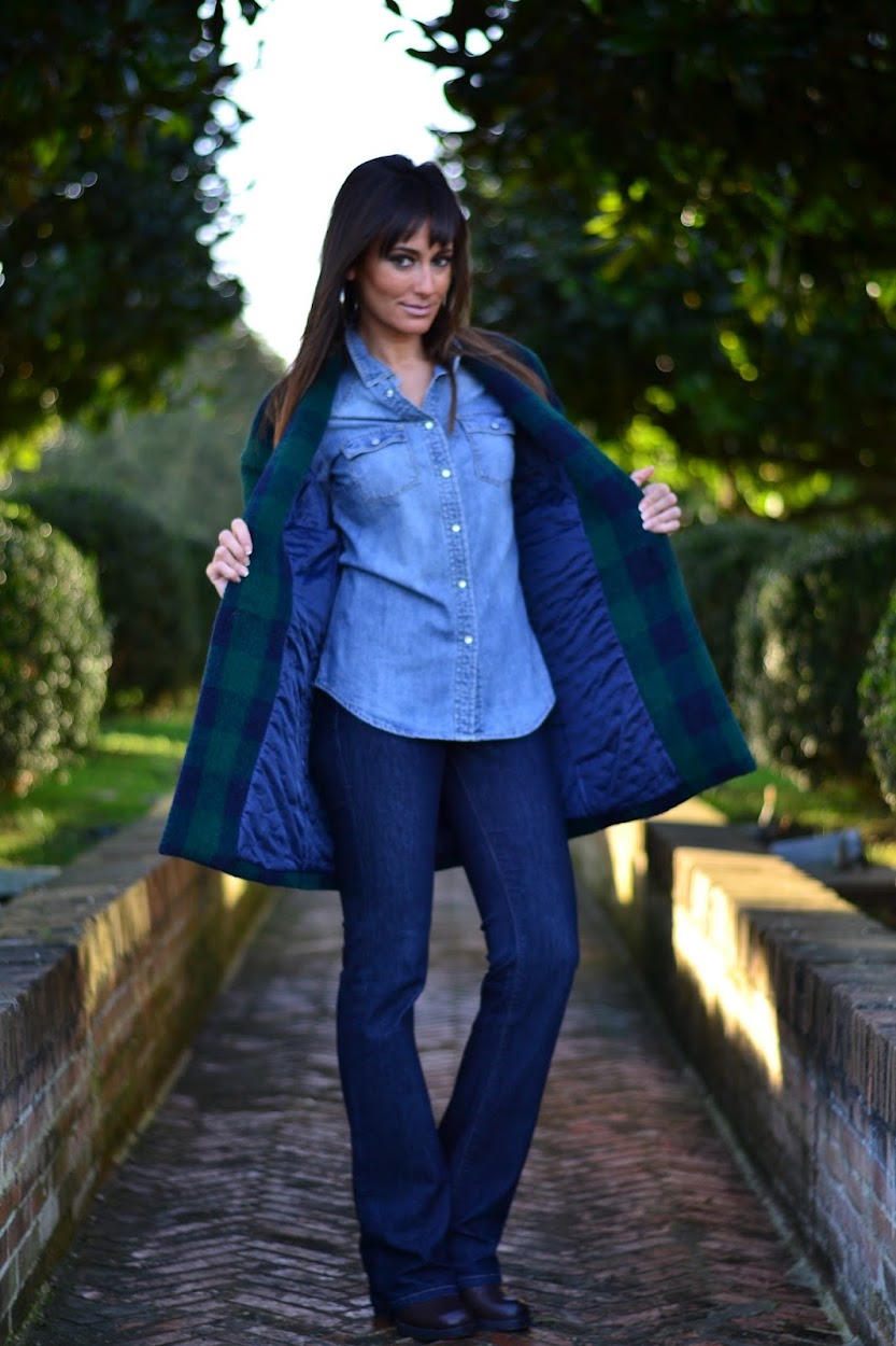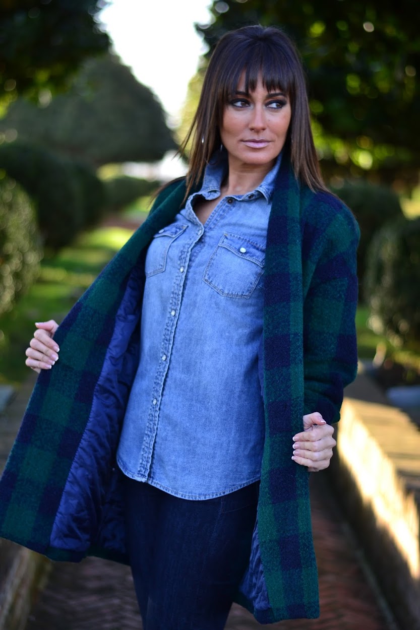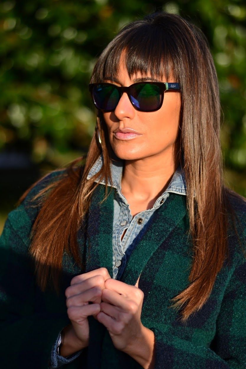 Para hoy concretamente, he elegido este modelo a cuadros (un estampado clásico y a la vez muy actual) en dos colores tan discretos como son el verde oscuro y el azul marino, con solapa larga, que además estiliza, precisamente de esta tienda de ropa, que ya se ha convertido en una de mis favoritas.