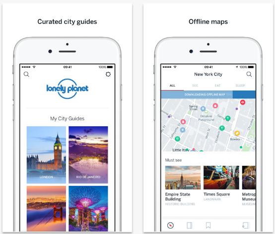 Guides by Lonely Planet (disponible para iOS y Android). Con esta app podrás tener acceso a multitud de guías de viajes de Lonely Planet de muchas ciudades del mundo y también descargar mapas offline.