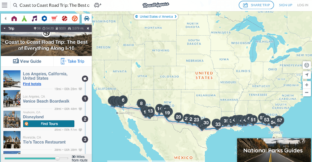Roadtrippers: Herramienta indispensable para poder personalizar tu roadtrip online y también disponible para iOS y para Android.